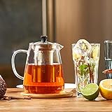 Gift for tea lovers set includes stovetop glass teapot with removable infuser you can take out the filter and still close the lid teapot sleeve bamboo coaster