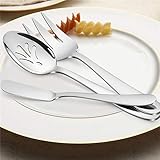 Nice weight these modern serving spoons have a nice weight to them ergonomic handles make serving easy comfortable to hold Perfect size not too big not too small perfect size for serving large spoon head allows ample space for serving all types of food