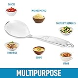 Zulay Kitchen - Wide spoon bowl its dimensions of 115 x 3 inches and thickness of 3mm is strong and wide enough to hold more food in one scoop Perfect for the holidays birthdays outdoor activities dinner parties and more Ergonomic comfortable handle the handle is designed with a curve that lets you hold the spoon in a way that fits your hand comfortably allowing you a manageable serving experience each time Easy to clean smooth surface and stainless steel structure make it easy to clean and maintain Simply wash with soap and water Dishwasher friendly Easy to store simply hang on a utensil hook holder or store in a drawer