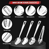 Patelai - Notch design a built in notch on the handle makes storage simple which makes the handle is not comfortable to hold but enables you to hang the spoons on hooks faster convenient to store and take does not take up space simple and elegant Spoons size you will get 13 inch perforated spoon slotted spoon solid spoon and 9 inch serving tong for versatility high durability and quality material each spoon measures 13 inches long great for reaching into deep pots and serving hot food Dishwasher safe you can put the stainless steel spoon set in the dishwasher very easy to clean and please rest assured to clean in dishwasher saving you a lot of time and energy