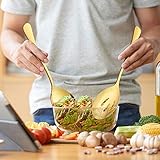 Perfect size with perfect size of 98 inch large enough to pick up foods to avoid spillage perfect for serving soup curries rice salad vegetable appetizer party platters and other foods Decent quality this gold serving spoon set is constructed by premium stainless steel rust resistant sturdy and solid structure ensure its durability will not bent to serve you well for years to come