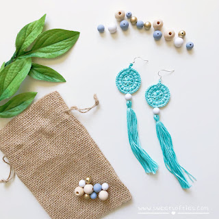 These earrings are so quick to make and you can customize them easily with different beads or tassels, or none at all! They work up quickly with just a bit of embroidery floss. A full video tutorial is available too!