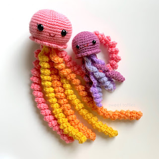 Customize these colorful jellies with different colors! They're great for summer booths and come in two sizes - a Mama and Baby. You can crochet them to sell individually or as sets.