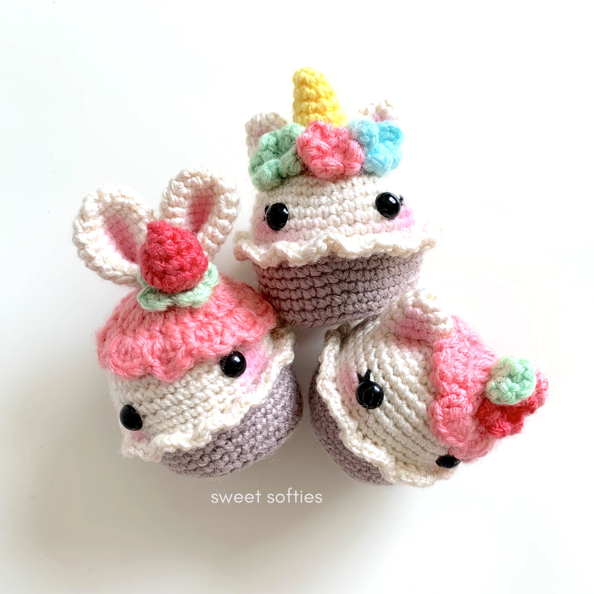 If you're looking for even smaller desserts, these are perfect to make as charms or keychains! (Pictured with Remi the Rabbit, a paid pattern)
