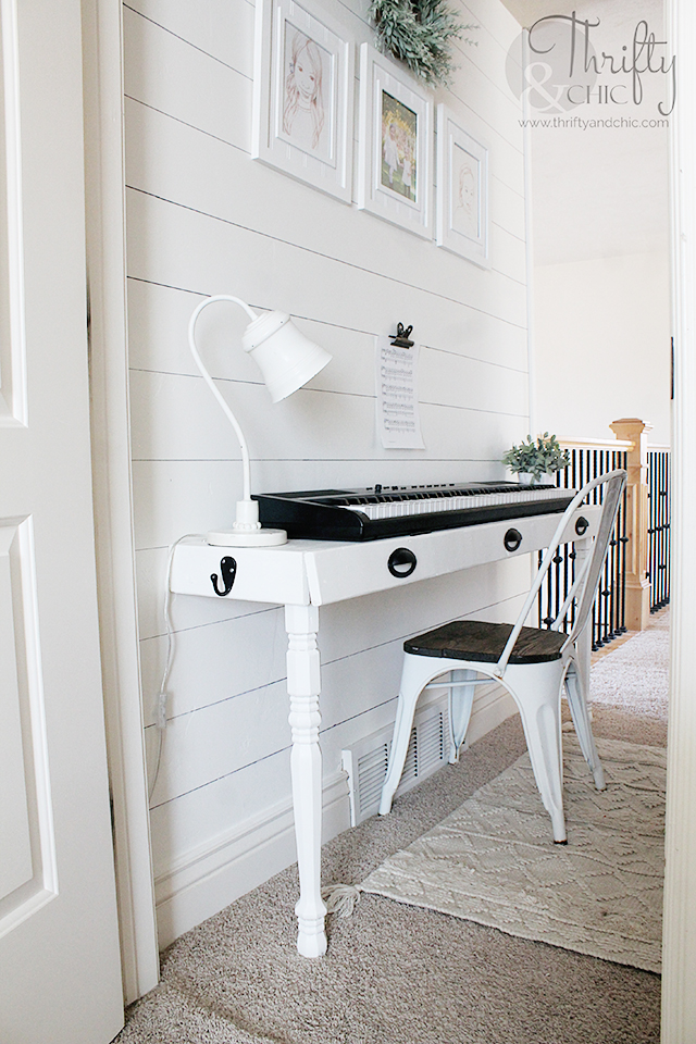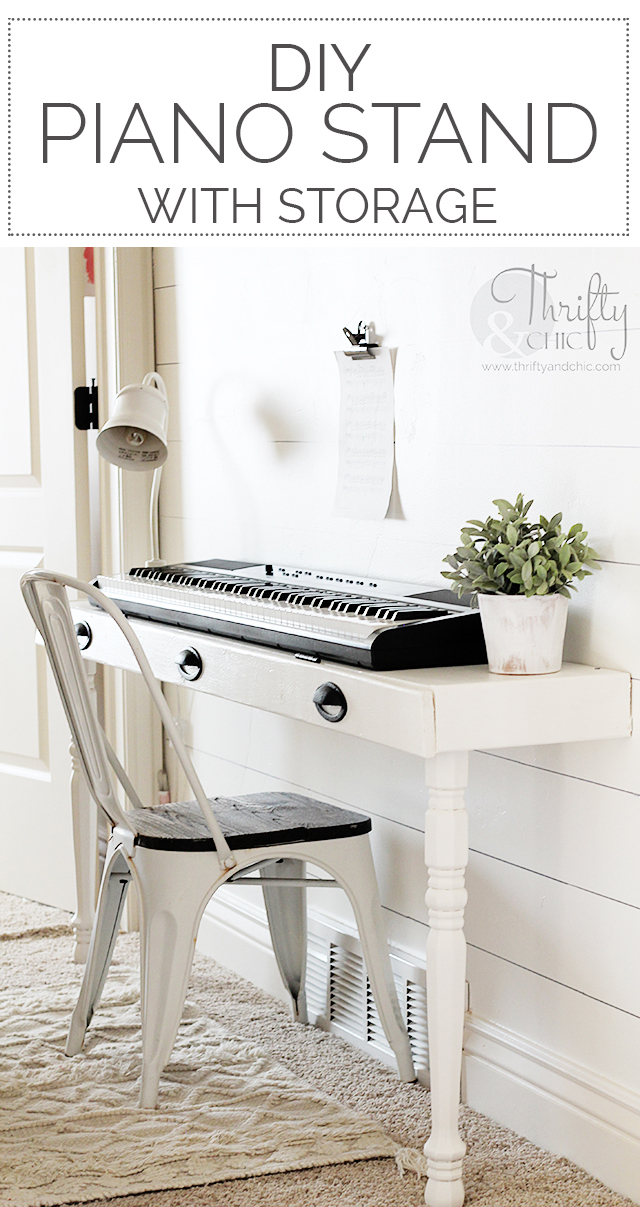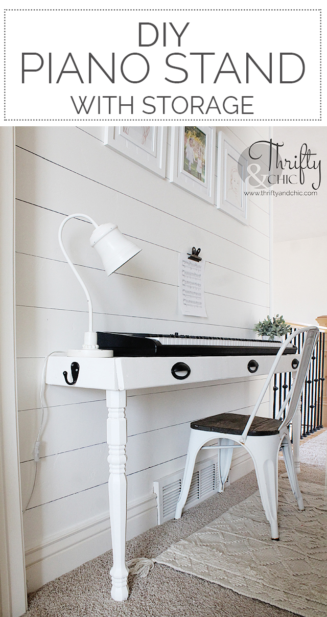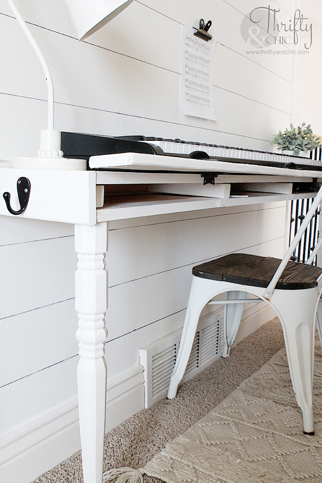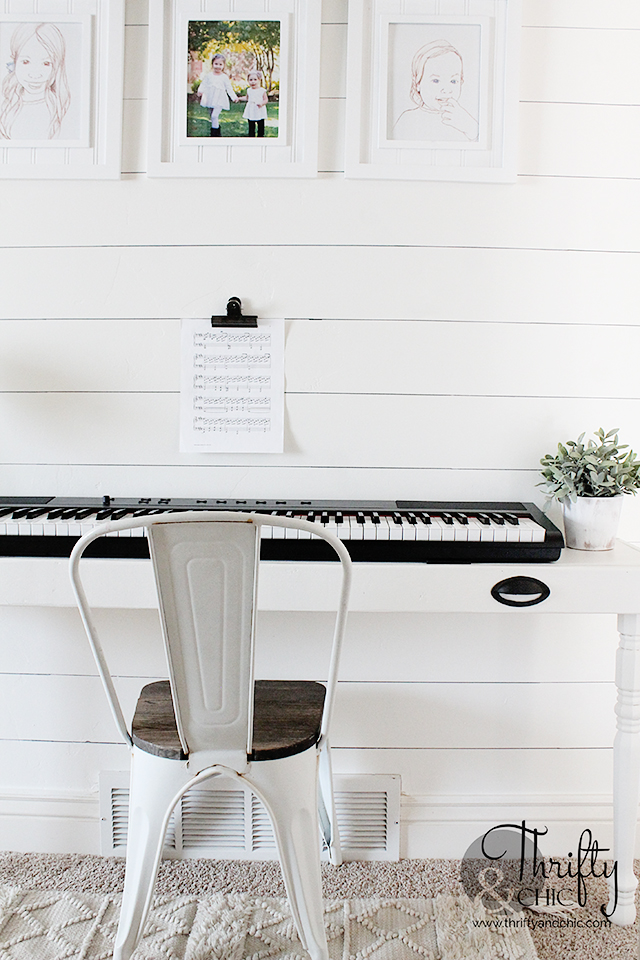 My amazing brother knew how much my girls loved playing, and decided to buy them this awesome keyboard for Christmas. The only problem? It didn't come with a stand. My other one didn't have a stand either, but I didn't care about sliding it in and out from underneath the couch a couple of times a week. I wanted a more permanent place for this new one. One that as you walk on by, you just can't help but play it.