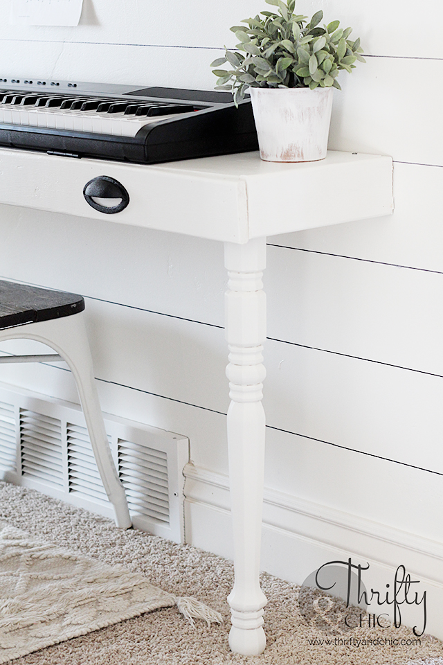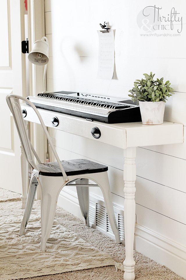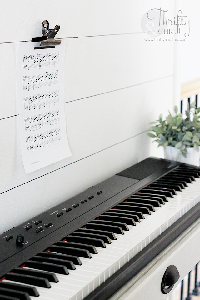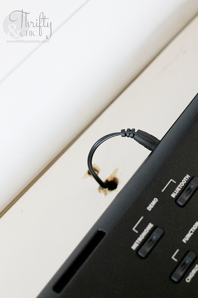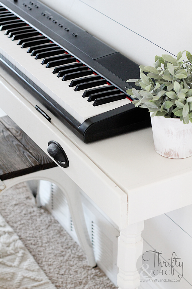 My amazing brother knew how much my girls loved playing, and decided to buy them this awesome keyboard for Christmas. The only problem? It didn't come with a stand. My other one didn't have a stand either, but I didn't care about sliding it in and out from underneath the couch a couple of times a week. I wanted a more permanent place for this new one. One that as you walk on by, you just can't help but play it.