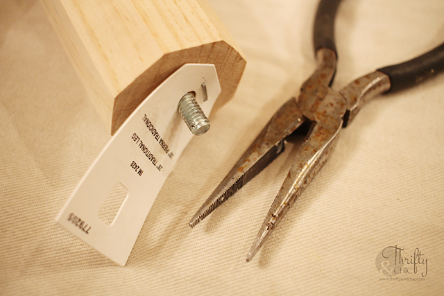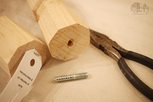 After that, I drilled a hole into the bottom of the stand, 2 inches in from each corner. I then twisted the leg into the hole. With a fresh coat of paint, it looked perfect!