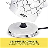 Electric kettle boil water faster than a microwave and safer than a stovetop with a flip of a switch This electric tea kettle features a 1350 watt heating element fully detachable 360 degree power base with cord storage a safe easy to use design Timeless favorite from countertop to table to living room this tea kettle is a home essential combining style versatility with functionality safety Boil hot water for tea coffee oatmeal instant soups more