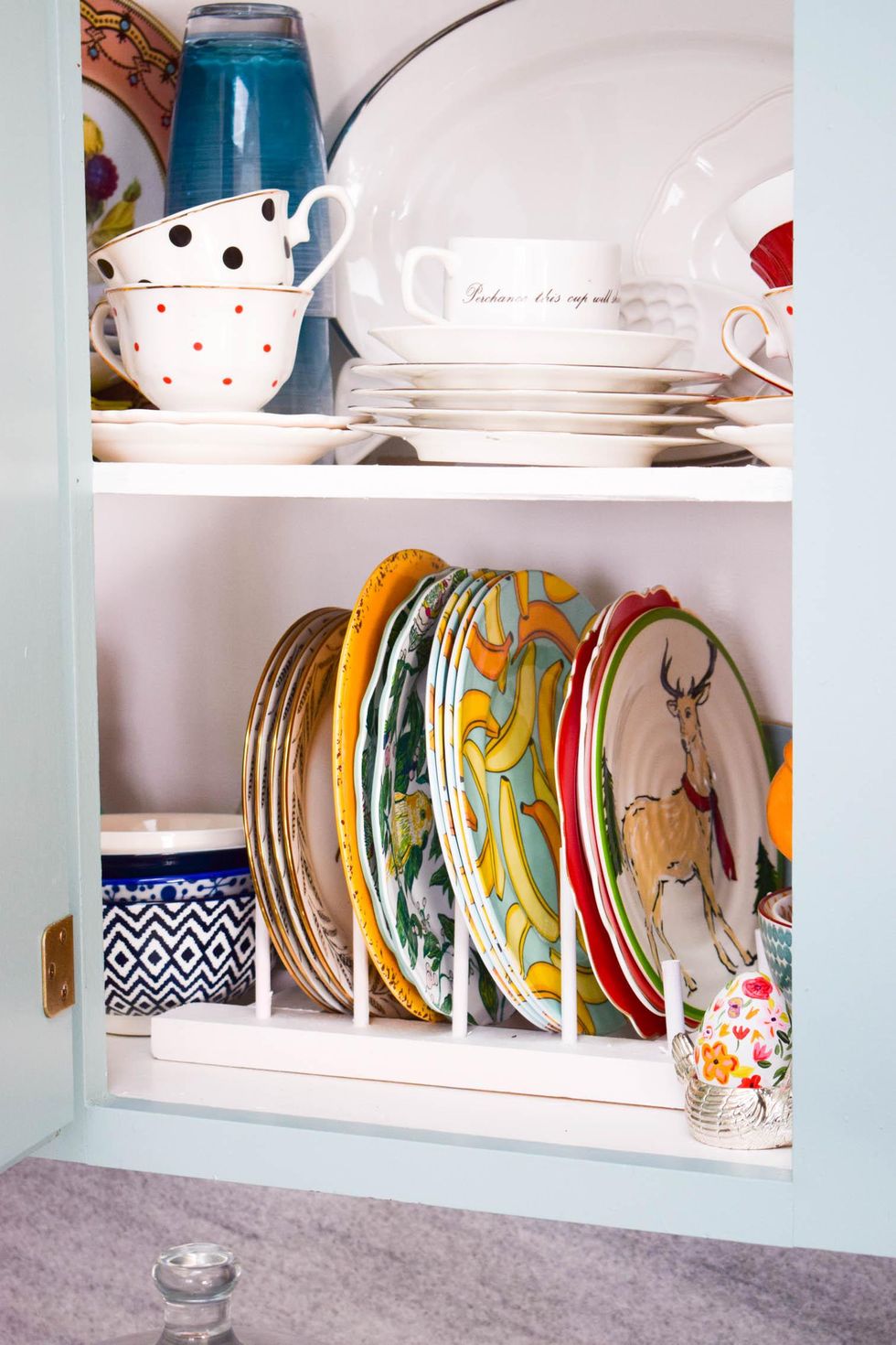 If you don't want to stack your plates (or you don't have the room for all the designs to have their own stacks), set them upright instead with a DIY plate rack. (via PMQ For Two)