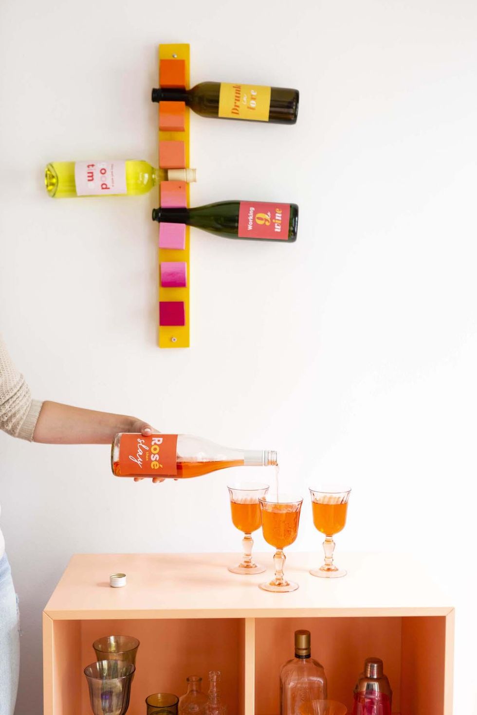 Okay, so this one isn't technically cabinet organization, but it will definitely save you room in your cabinets. DIY this wine rack that will move your wine bottles from your cabinets onto the wall and add color to your room at the same time.