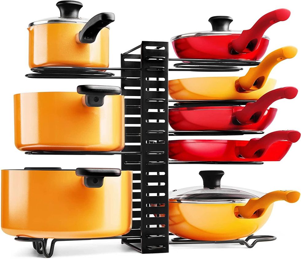 A pot organizer like this one from MUDEELA ($24, was $30) will keep all your pots and pans together, and you won't have to put up with the noise of when they're stacked on top of each other.