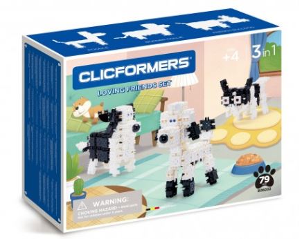 Hook, Stack, Fold and roll your way into fun with the Loving Friends 79Pc! Build and Create a Poodle, French Bulldog and Border Collie. Clicformers construction toys are ideal for the development of eye-hand-coordination of children ages 4 and up. Once youre done following along with the enclosed idea sheet you can work to build your own ideas! Clicformers sets are compatible with each other and let you build with endless possibilities! Clicformers are perfect for STEM education and when playtime is over, use the clicking mechanism to simply stack and store. Loving Friends 79Pc Set is a top STEM toy. Ages 4 & up. MSRP: $29.99.